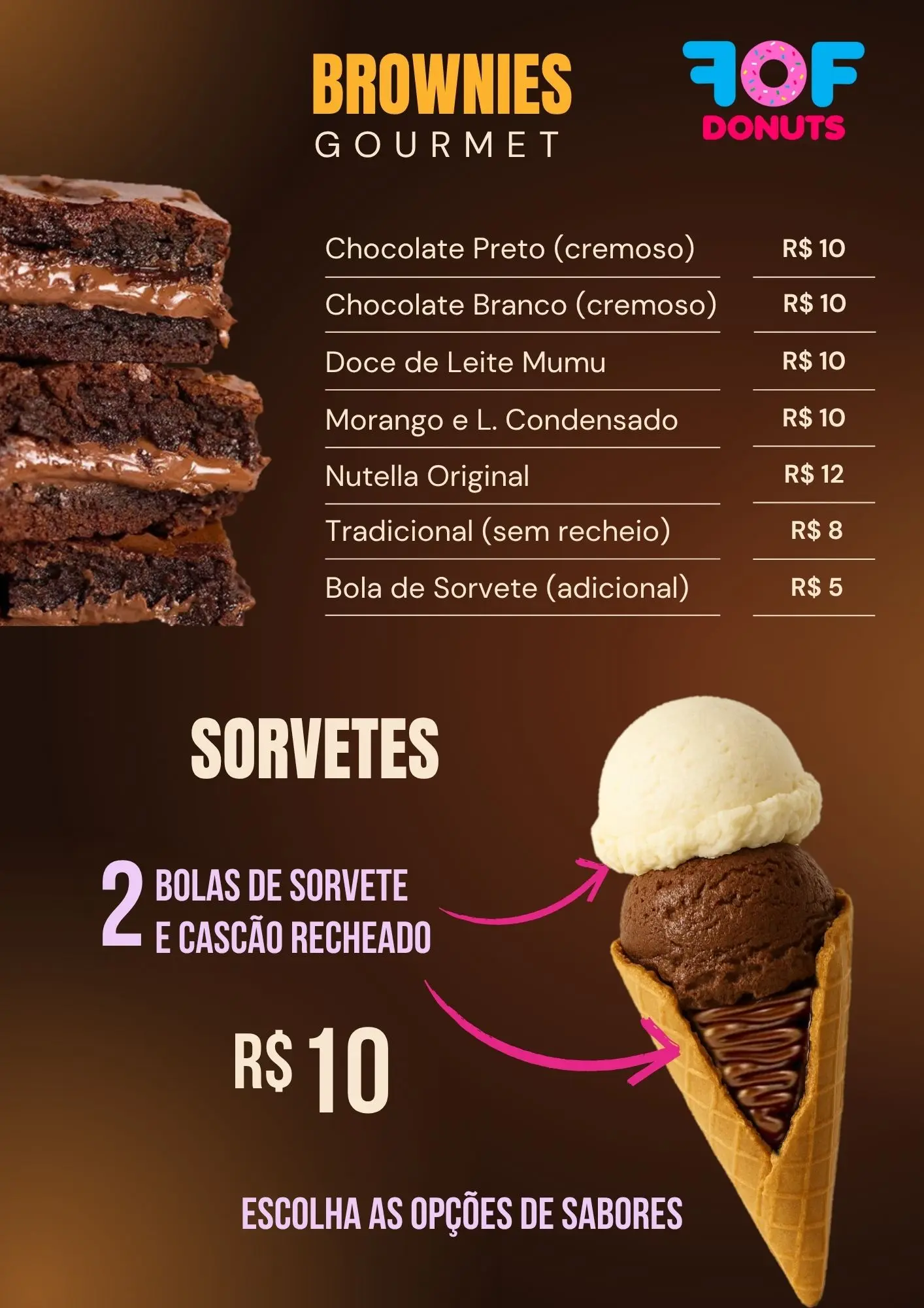 Além dos donuts recheados, você também pode provar deliciosos xis, hamburgueres, pizzas, brownies, sorvetes e açaí no copo.